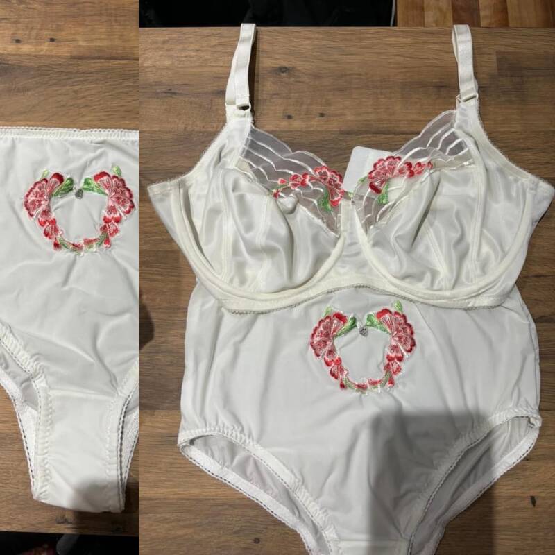 Jessica’s Twin made up in circles stretch lace. Even the powernet is covered in the circles stretch lace. All in ivory even the rosette looks fabulous